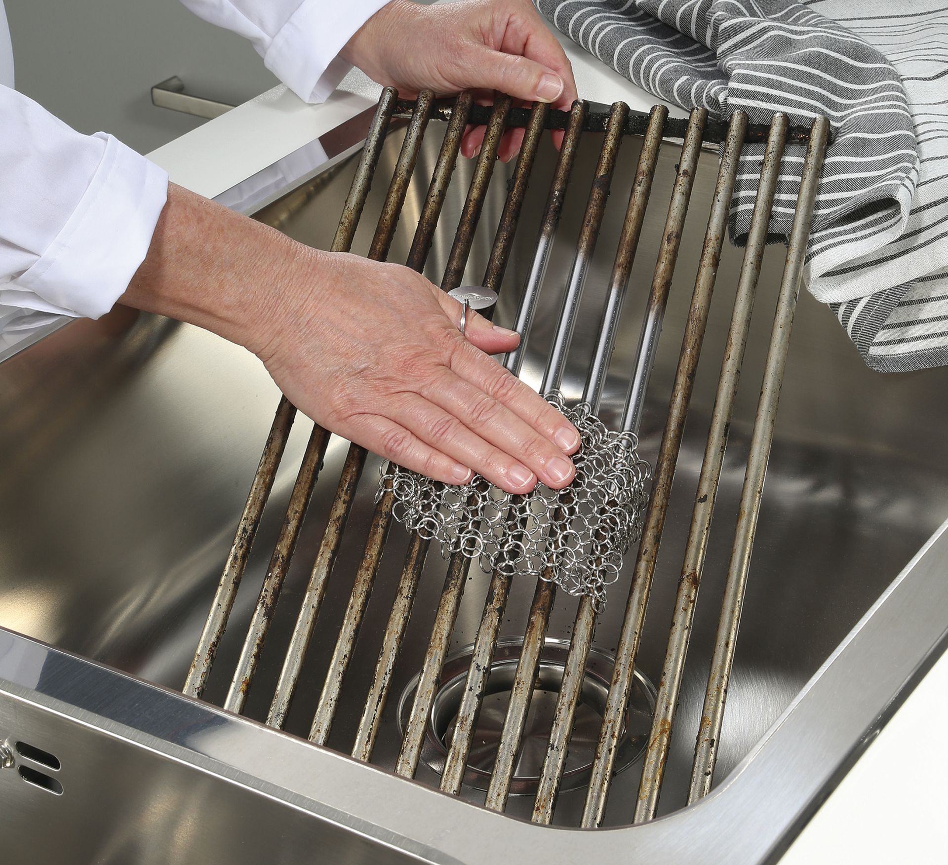 Reinigungsnetz bestehend aus Ringen für hartnäckige Verschmutzungen auf dem Grill.
