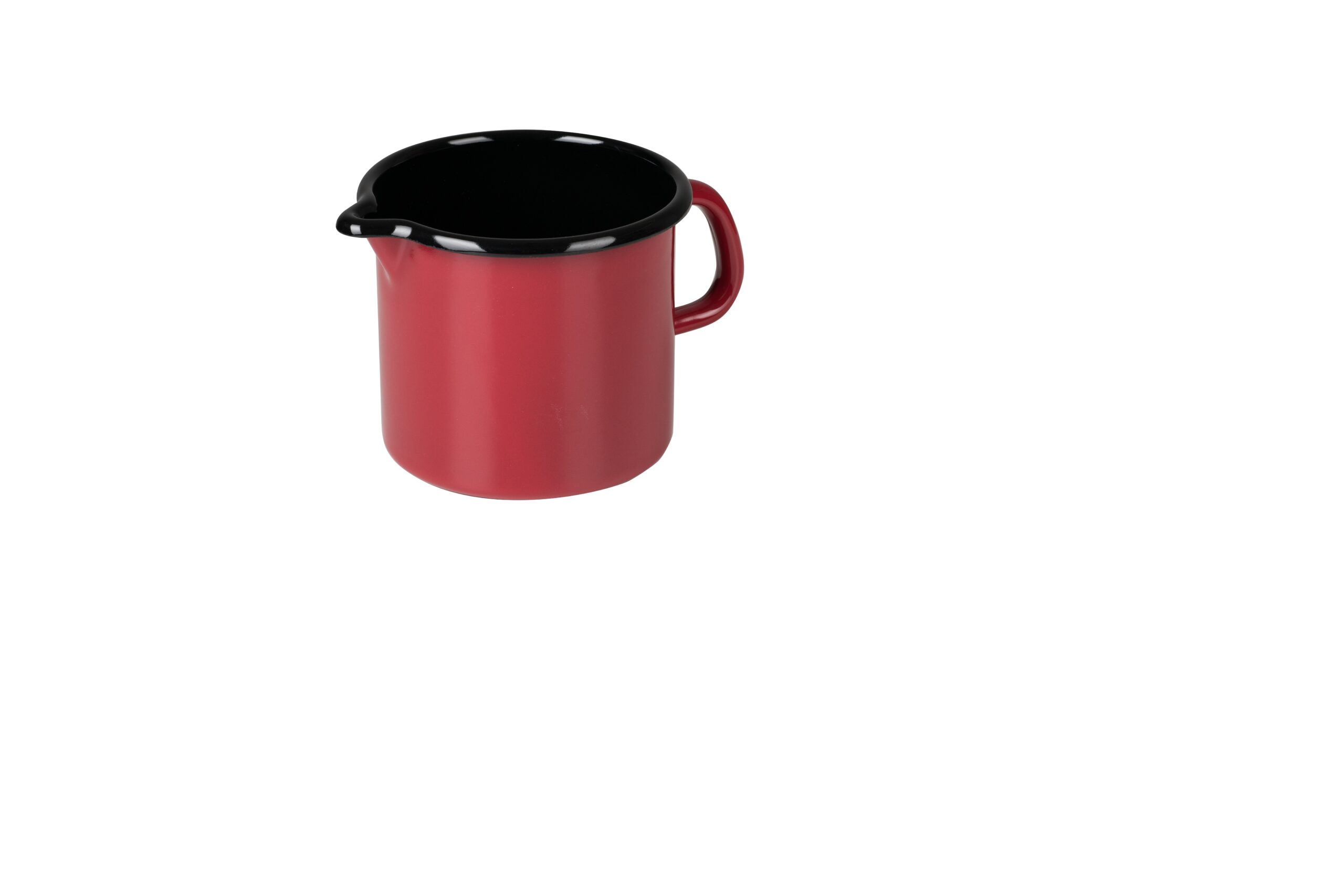 Manche nennen ihn auch Milchtopf oder Milchhäferl aber bei uns wird er immer der Schnabeltopf bleiben, wegen seines charakteristisch geformten Ausgusses. Mit diesem gelangt die Flüssigkeit zielsicher in das vorgesehene Gefäß und eignet sich mit seinem Rundgriff ideal für das direkte Servieren am Tisch. Der Rand ist rund geschwungen – Bördelrand in der Emaillesprache – dabei wird das Metall gebogen, um einen runden und stabilen Rand zu erzeugen. Der Schnabeltopf gefiel nicht nur unserer Oma sondern ist nach wie vor ein beliebter Helfer in der Küche für allerlei Gelegenheiten.