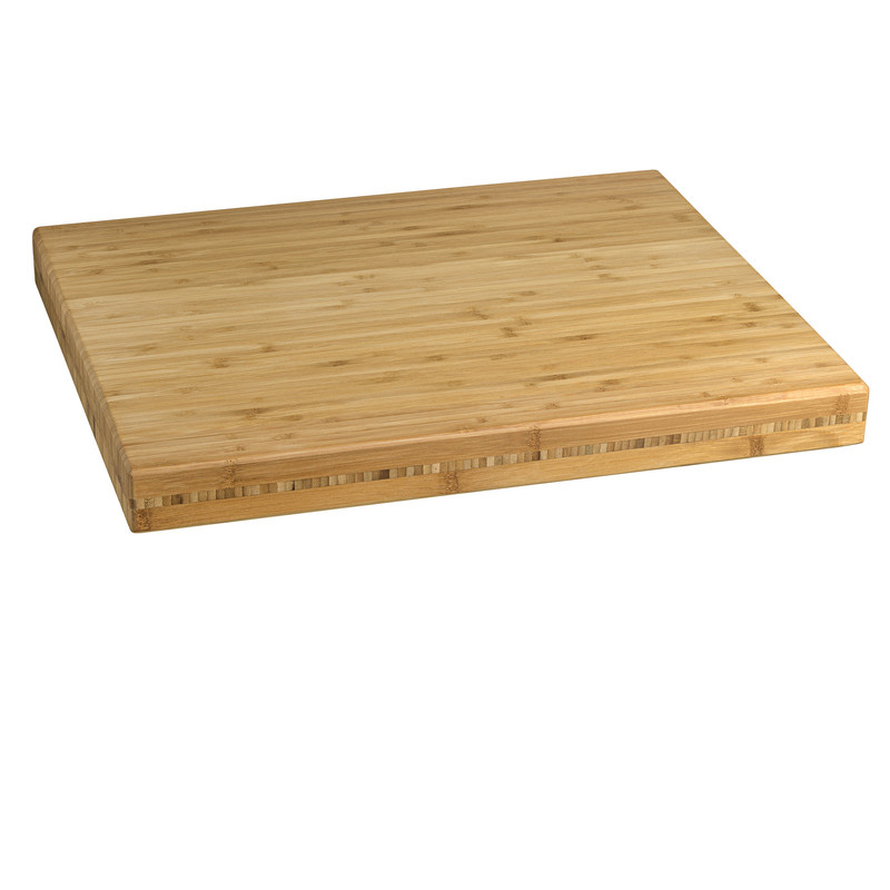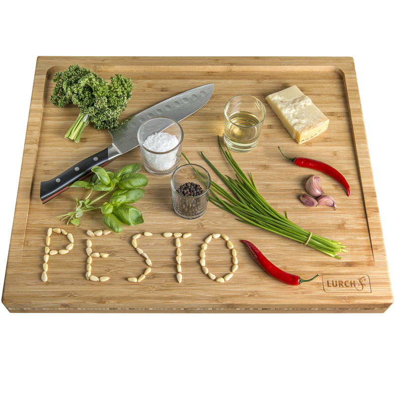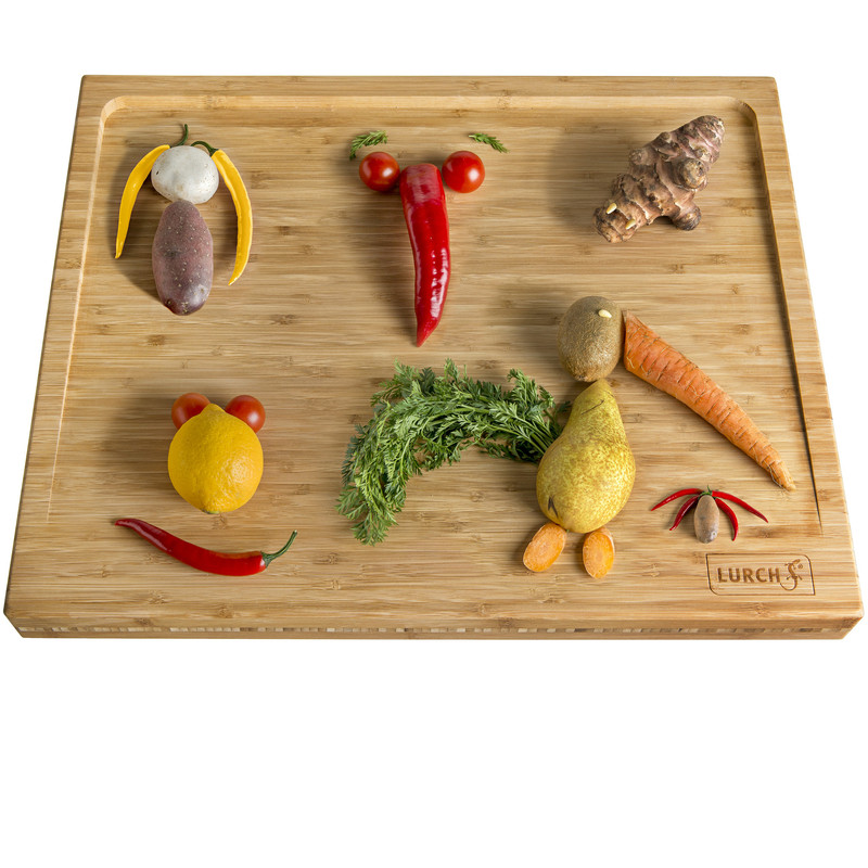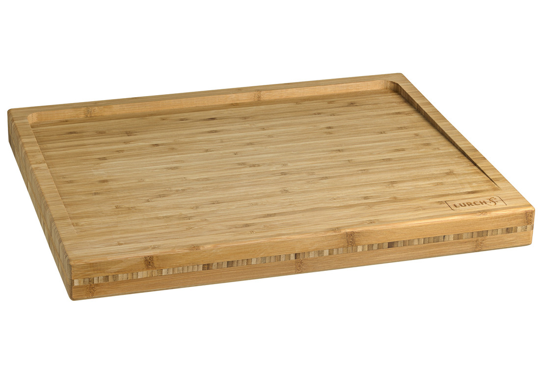 Eine ideale Arbeitsunterlage für alle Kochfans bildet das Bambus-Schneidbrett von LURCH.