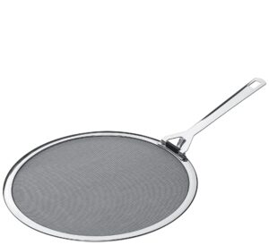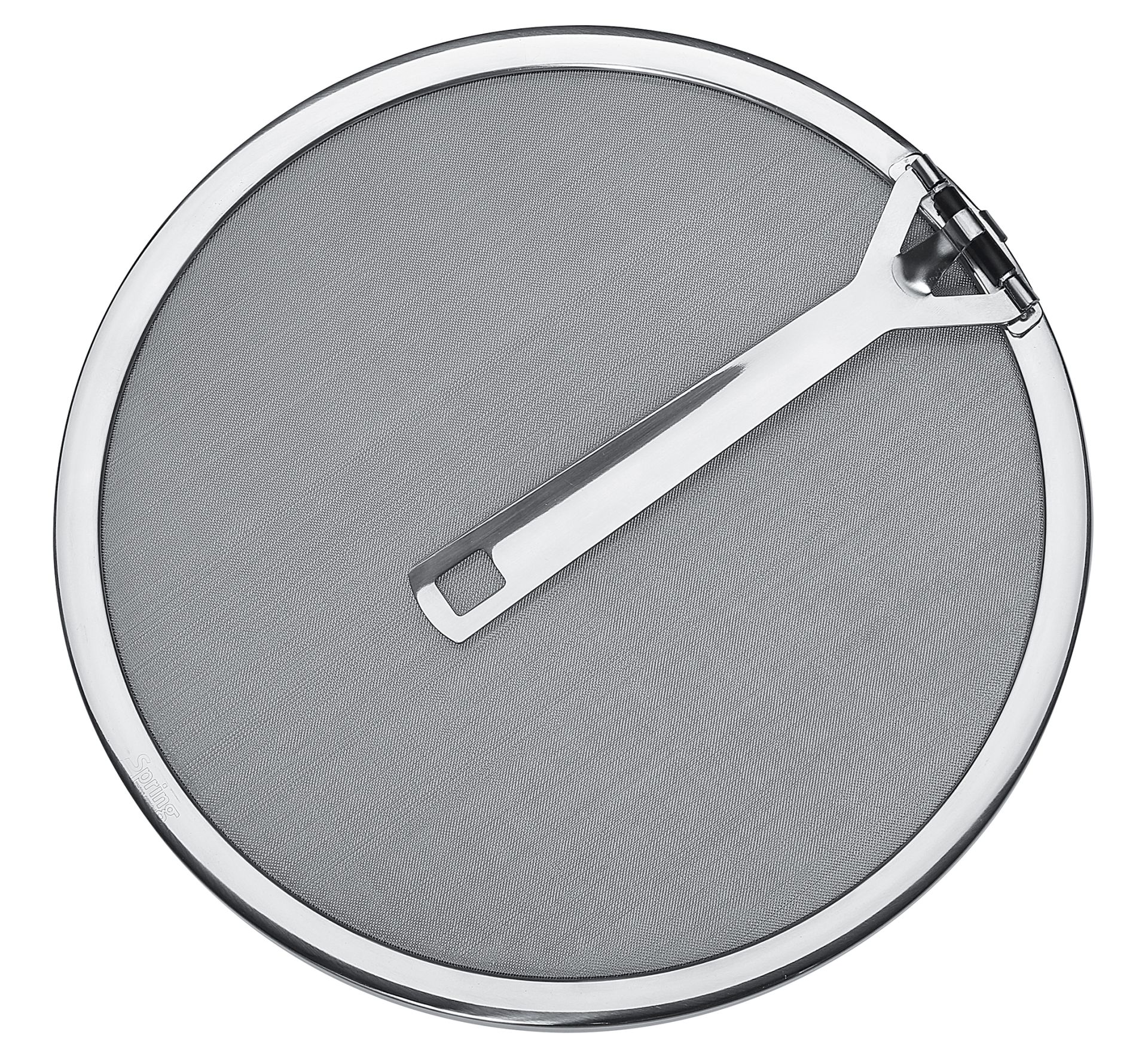 Mit dem Spritzschutz von Spring geben Sie Fettspritzern keine Chance. Die feinen Maschen halten die Spritzer zurück, der Dampf entweicht – für ein perfektes Bratergebnis. Der breite Rand des Siebs sitzt gut auf Töpfen und Pfannen, der stabile Griff gibt zusätzliche Sicherheit und wird nicht heiß. Der Clou: Für die platzsparende Aufbewahrung können Sie ihn einfach einklappen. Zur Reinigung stecken Sie das Sieb aus robustem Edelstahl einfach in die Spülmaschine. Tipp, wenn es mal ein Steak sein soll: Es gelingt besonders gut in Butterschmalz, da dieses hoch erhitzt werden kann und einen feinen Geschmack besitzt.