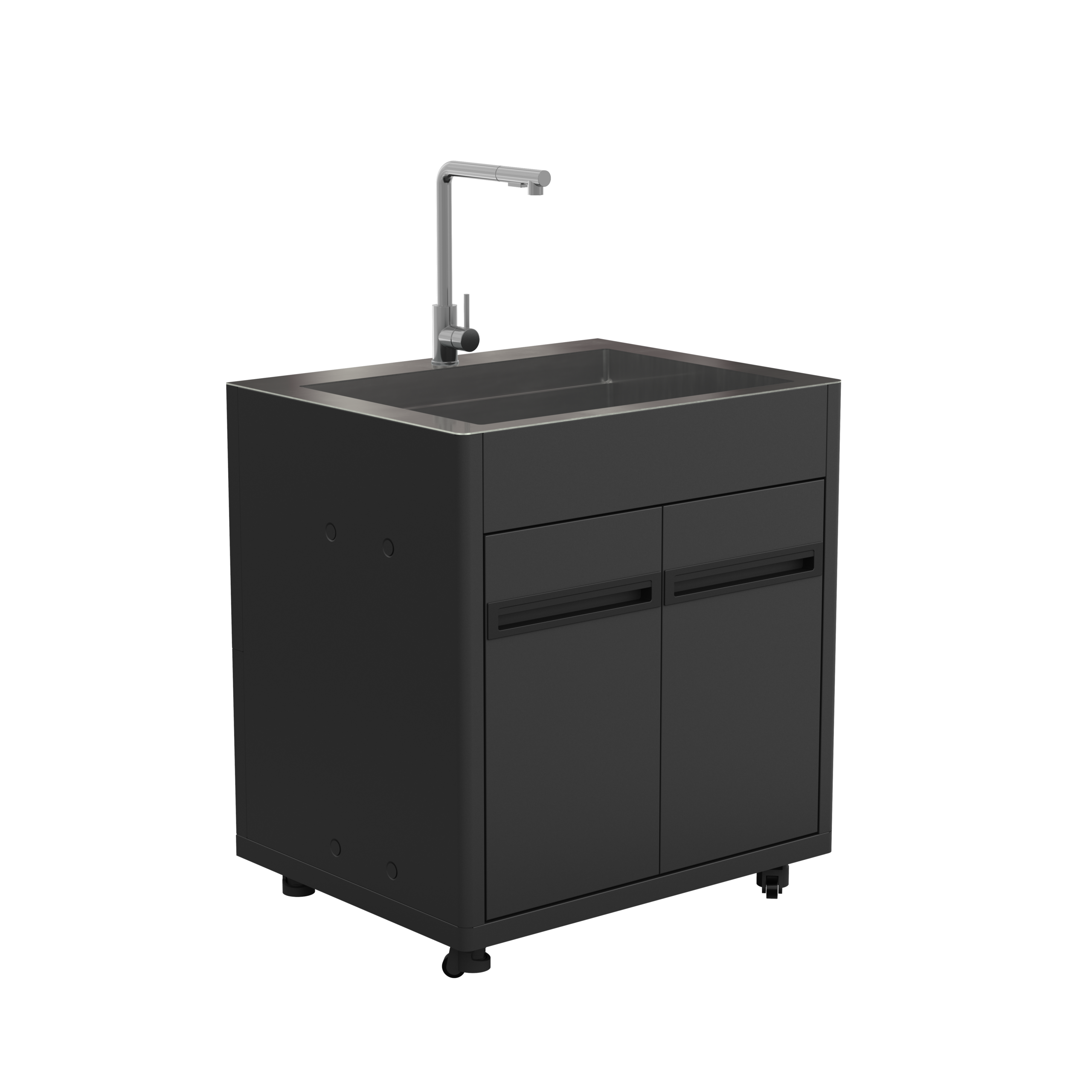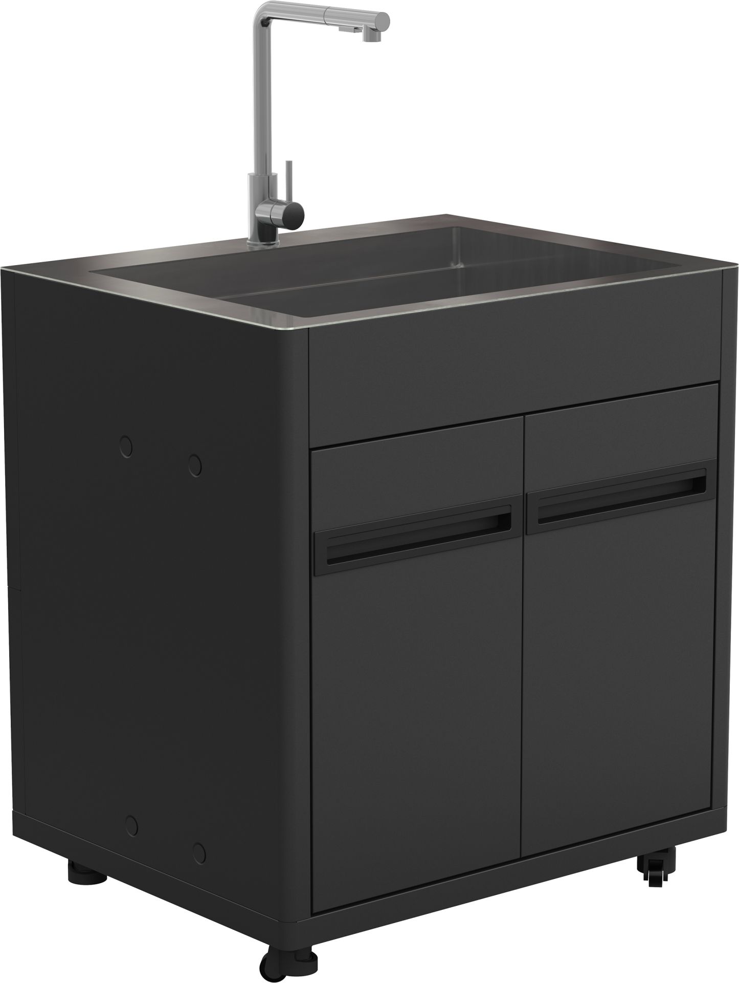Outdoorküchenmodul HEAT mit vollintegriertem Spülbecken aus Edelstahl.