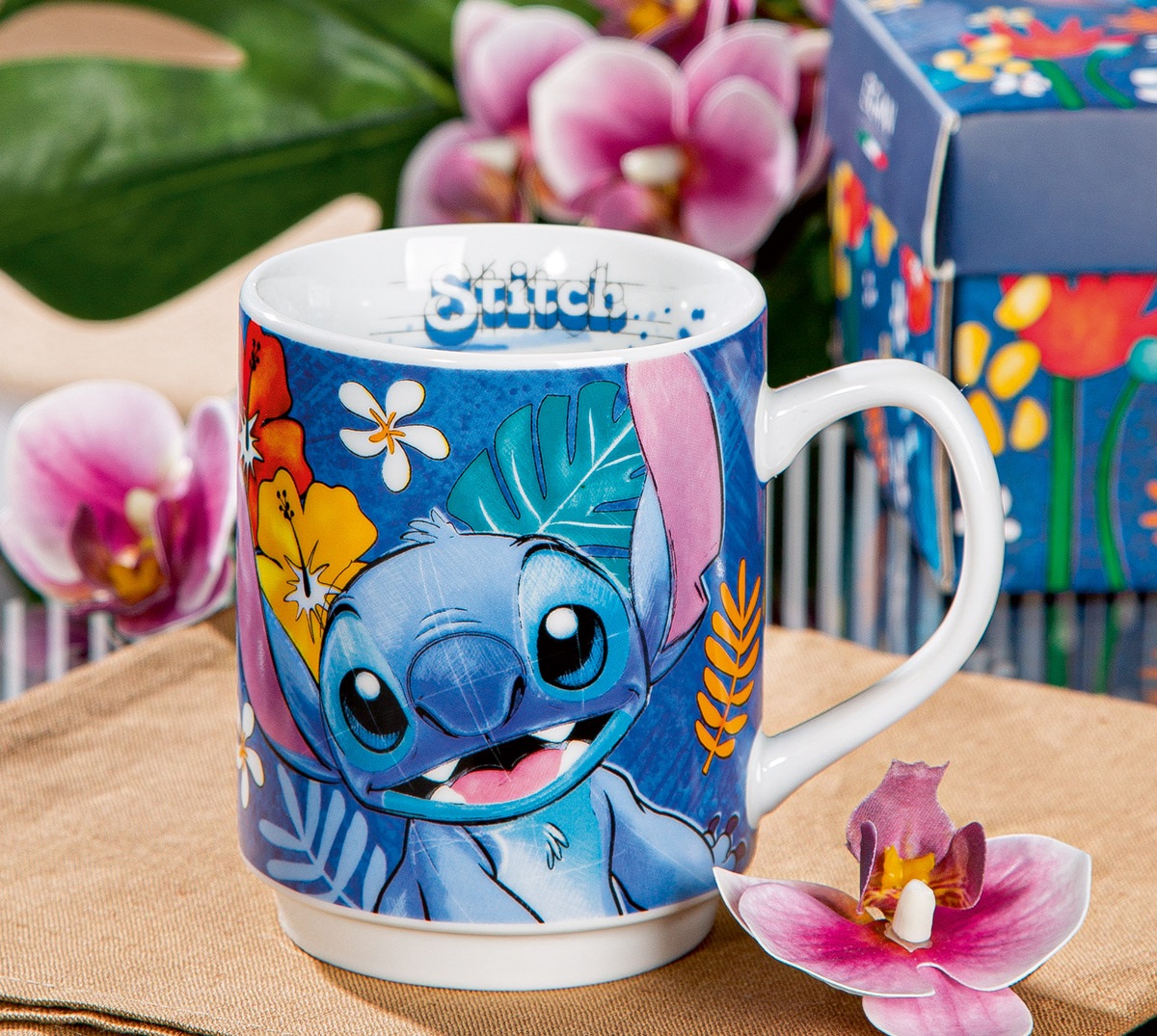Stapelbecher aus Porzellan mit Disney Motiv „Stitch“.