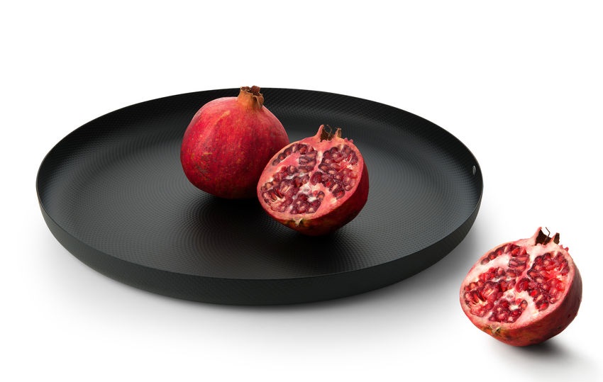 Schwarzes Tablett mit Reliefdekor, lackiert mit Epoxidharz.