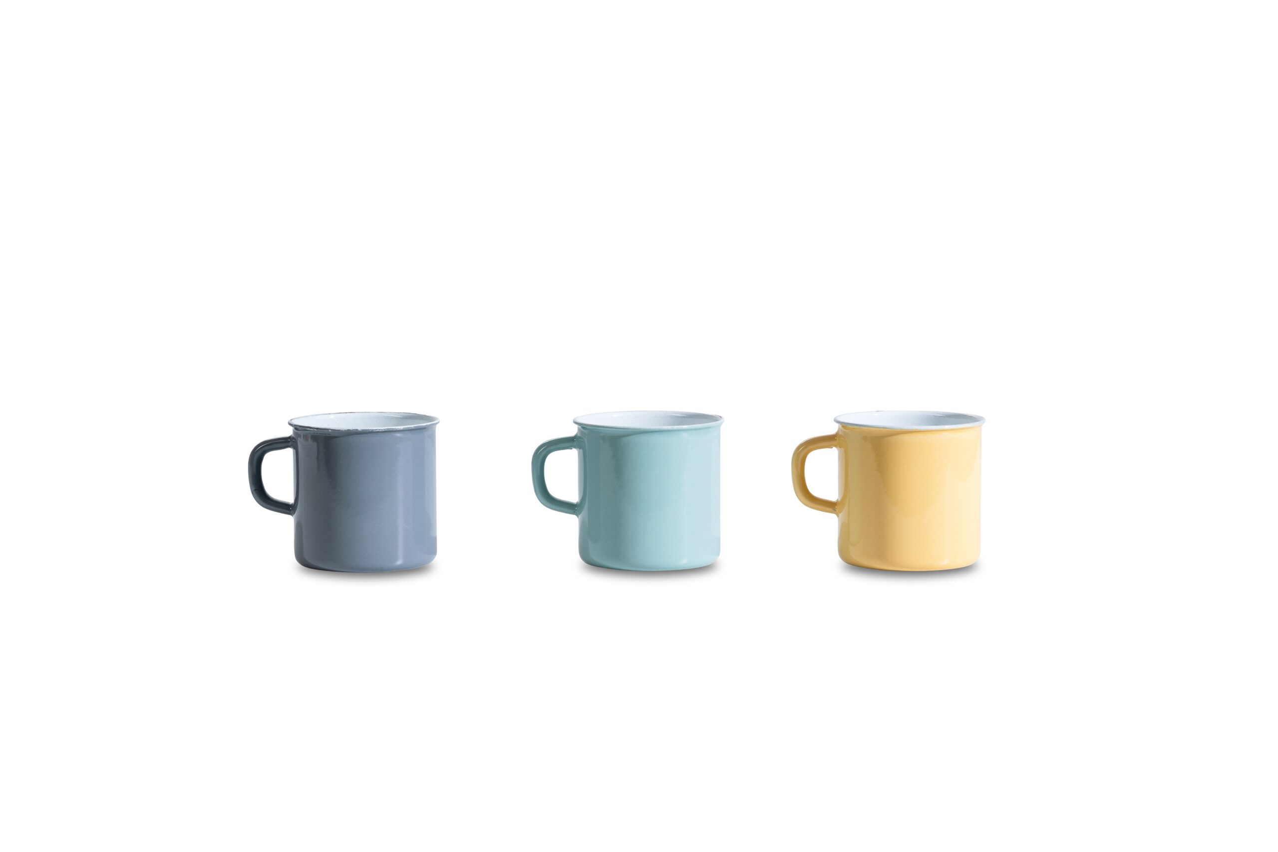 Trinkbecher aus Emaille mit Henkel.