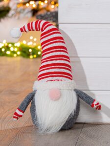 Türstopper Wichtel in grau mit rot- weißer Mütze.
