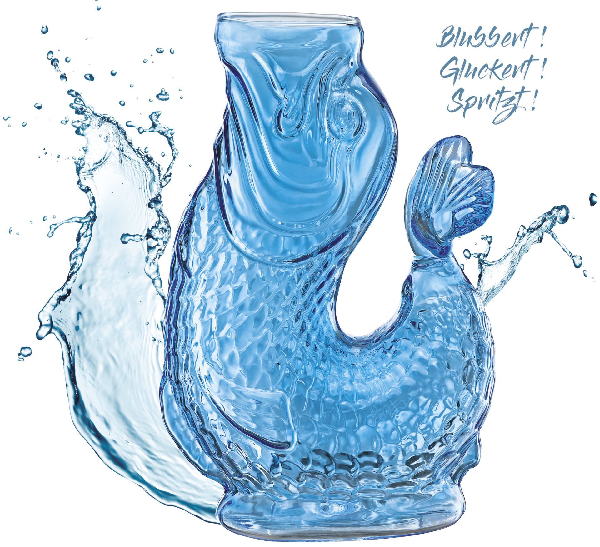 Karaffe aus Borosilikatglas in Fischform.