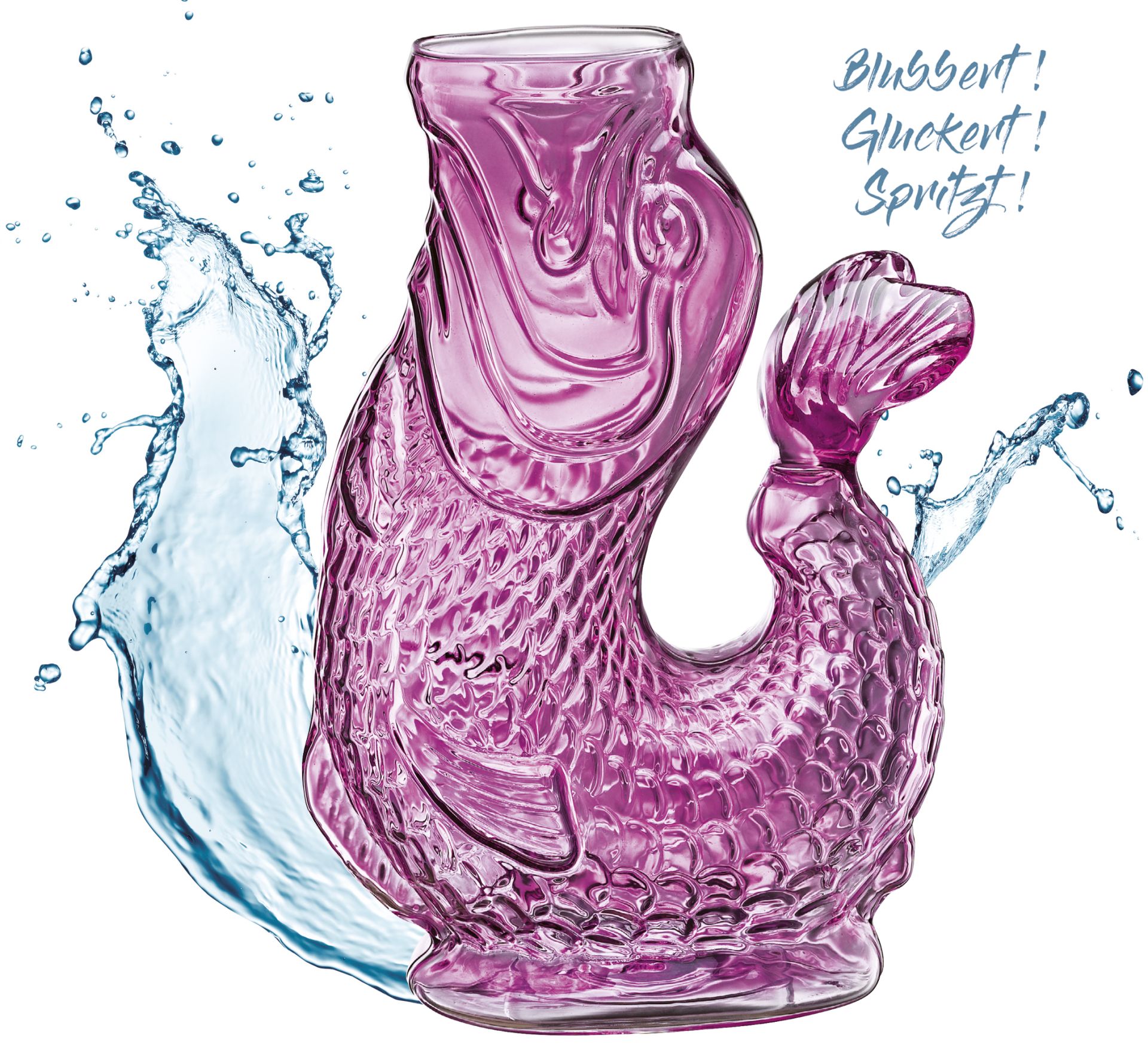 Die handgefertigte Karaffe ist der Hingucker auf jedem Tisch. Außerdem sorgt der fidele Fisch für Spaß ins Glas. Denn das Ausgießen wird von einem fröhlichen Gluckern begleitet. Da greifen die Familie und Ihre Gäste gerne noch mal zu und schaffen es spielend, die pro Tag empfohlenen zwei Liter Wasser zu trinken. Der breite Hals ermöglicht ein einfaches Befüllen der Karaffe, in der sich auch gerne Eiswürfel oder Obst-Stückchen tummeln. An dem Fischschwanz-Griff transportieren Sie NEMO ganz bequem auf den Esstisch, die Terrasse oder das Buffet. Für ein reinigendes Bad springt NEMO am liebsten in das klare Wasser im Spülbecken und nicht in die Spülmaschine. Bleibt nur noch die Frage: In welcher Farbe angeln Sie sich die originelle Wasserkaraffe?