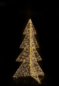 Festlich leuchtende Dekoration für den Innen- und Aussenbereich. Der Baum hat eine goldene Struktur und spendet warmweisse Beleuchtung. Das Kabel hat eine Gesamtlänge von 5m, mit Trafo 4.5V