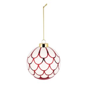 Weihnachtsbaumkugel aus mundegblasenem Glas in Rot/ Weiß.