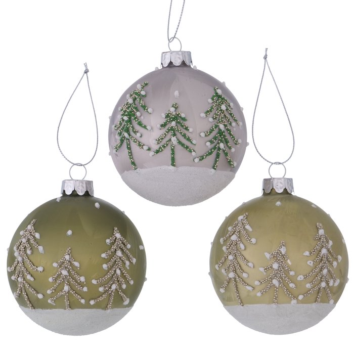 Weihnachtskugel in den Farben Beige, Grün und Hellgrün geeist.