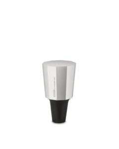 Schlichter Weinflaschenverschluss aus verchromten Zamak und Silikon.