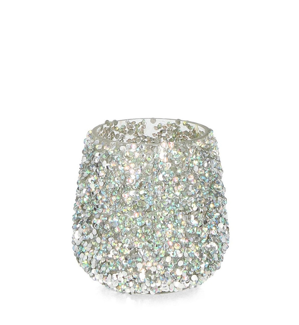 Das glitzernde Windlicht in Silber eignet sich perfekt als Tisch- oder als Raumdekoration. Das funkelnde Design sorgt für stilvolle Akzente und lässt jeden Raum in edlem Glanz erstrahlen.