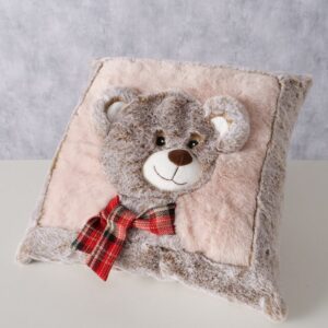 Dieses flauschige Zierkissen mit süßem Teddybär-Motiv ist ein echter Hingucker! Das Kissen besteht aus superweichem Plüschmaterial in warmen Beige- und Grautönen und verleiht jedem Raum eine gemütliche Atmosphäre. Der niedliche Teddybär mit kariertem Halstuch sorgt für einen liebevollen Akzent – perfekt für Kinderzimmer, Sofa oder als Geschenkidee.